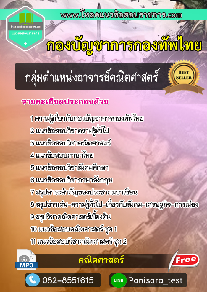 แนวข้อสอบกลุ่มตำแหน่งอาจารย์คณิตศาสตร์ กองทัพไทย