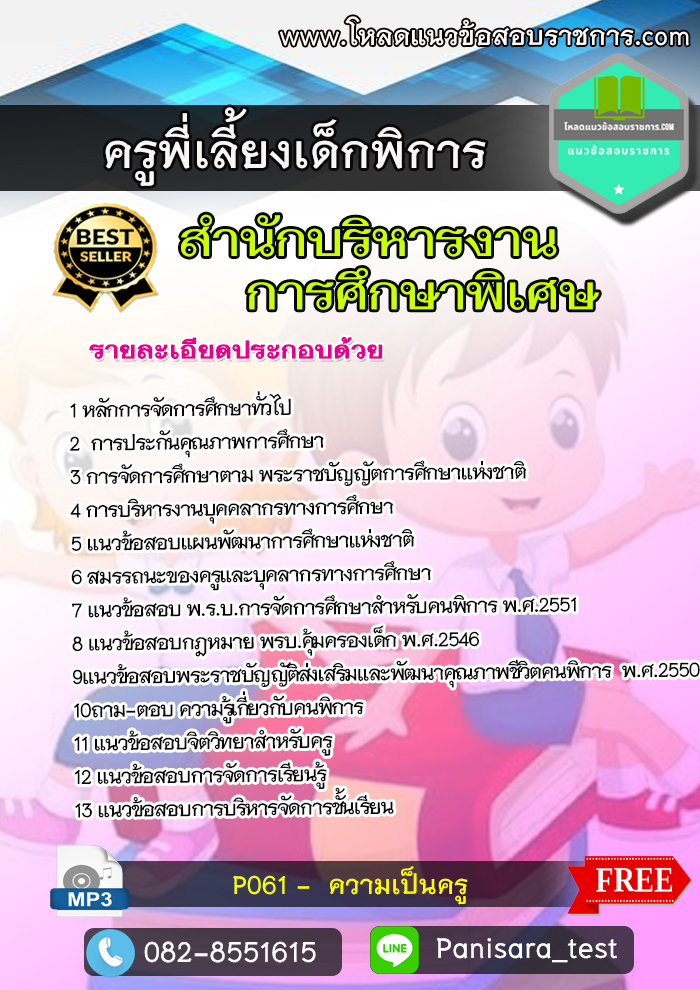 แนวข้อสอบ ครูพี่เลี้ยงเด็กพิการ สำนักบริหารงานการศึกษาพิเศษ