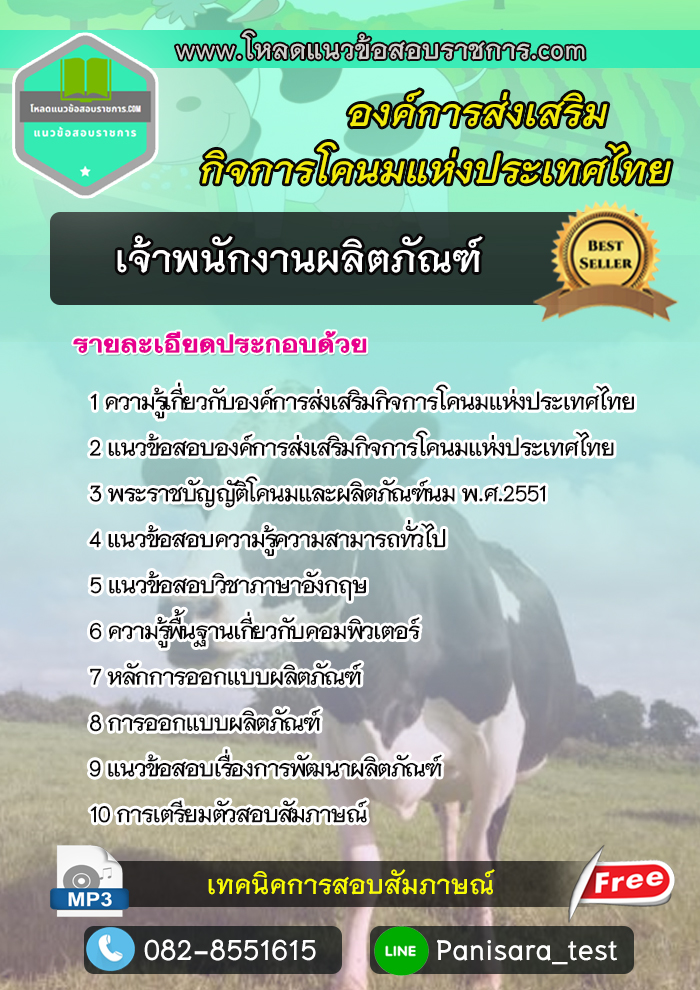 แนวข้อสอบ เจ้าพนักงานผลิตภัณฑ์ องค์การส่งเสริมกิจการโคนมแห่งประเทศไทย อ.ส.ค.